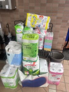 今回は、イランの戦争でガソリンや燃料費が上がり、トイレットペーパーやティッシュなども高騰し始めてきたので、お持ちしました。