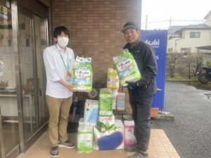 このようなものに関しては未開封品に限ってお持ちしております。また、食べ物や飲み物の寄付も行っており、今回写真などはございませんが、こども食堂にも寄付しております。